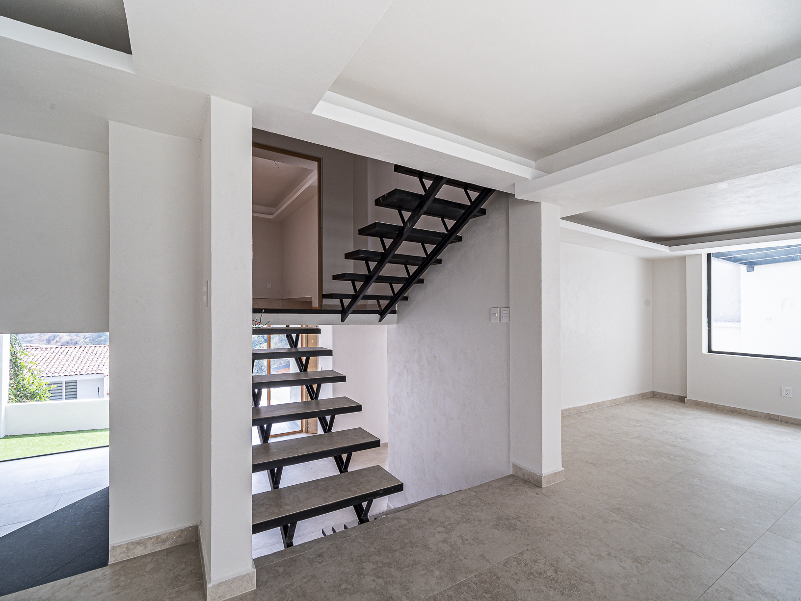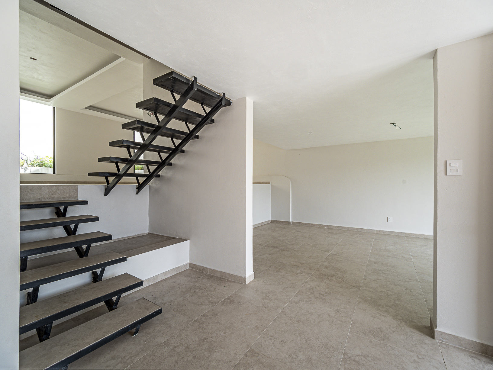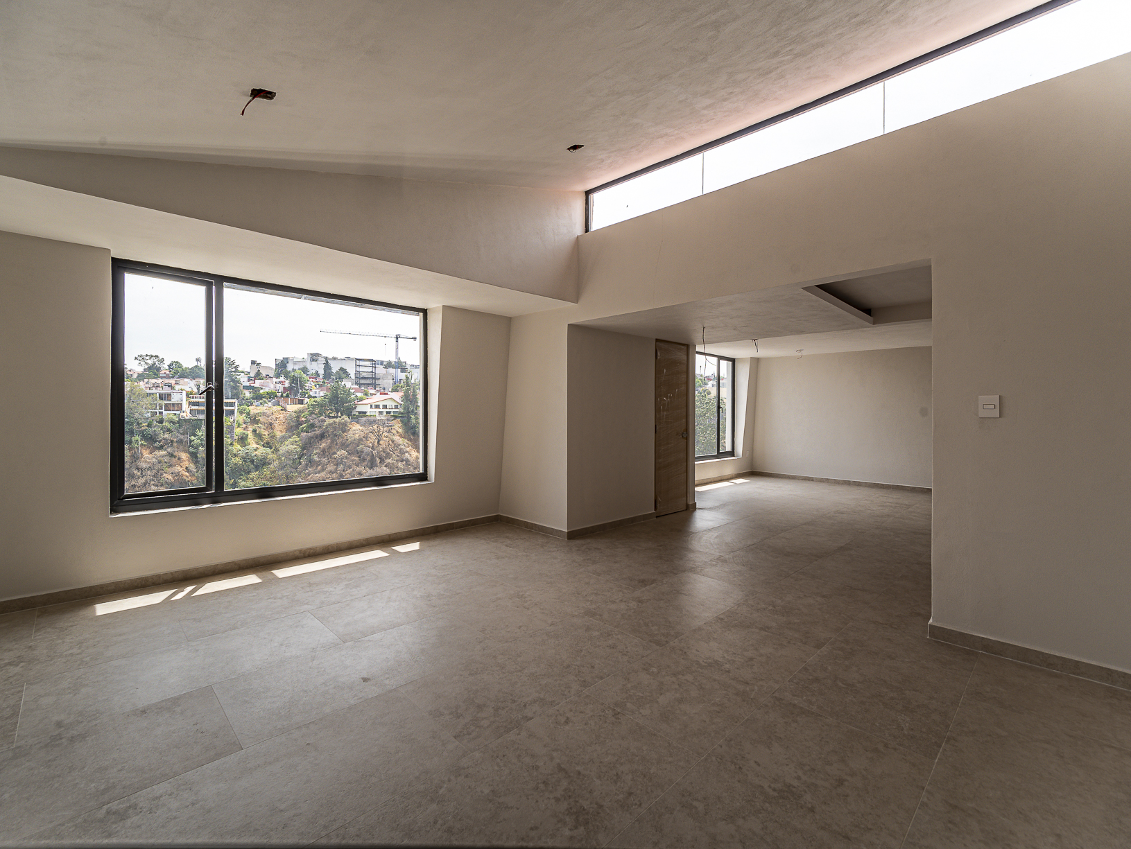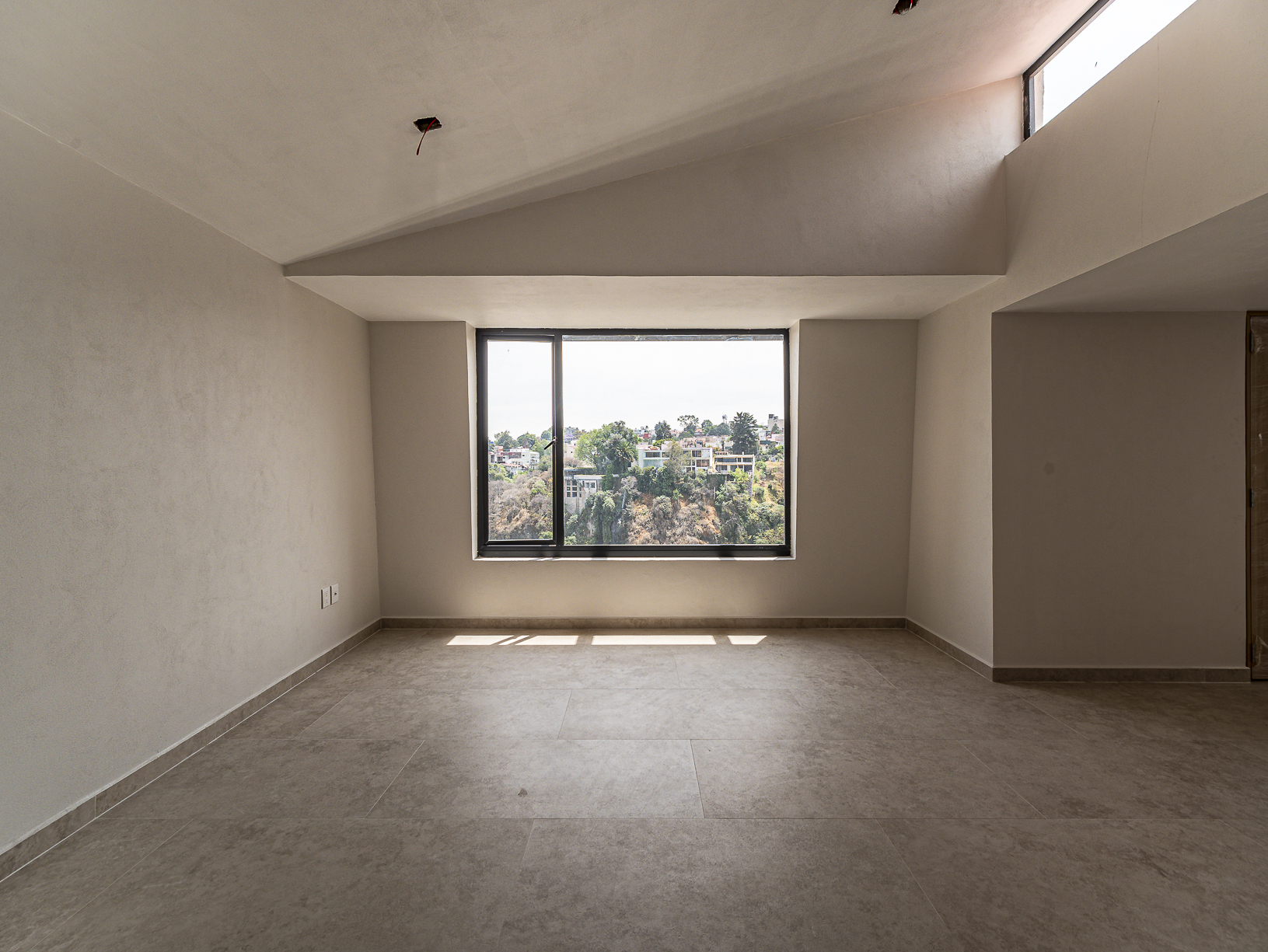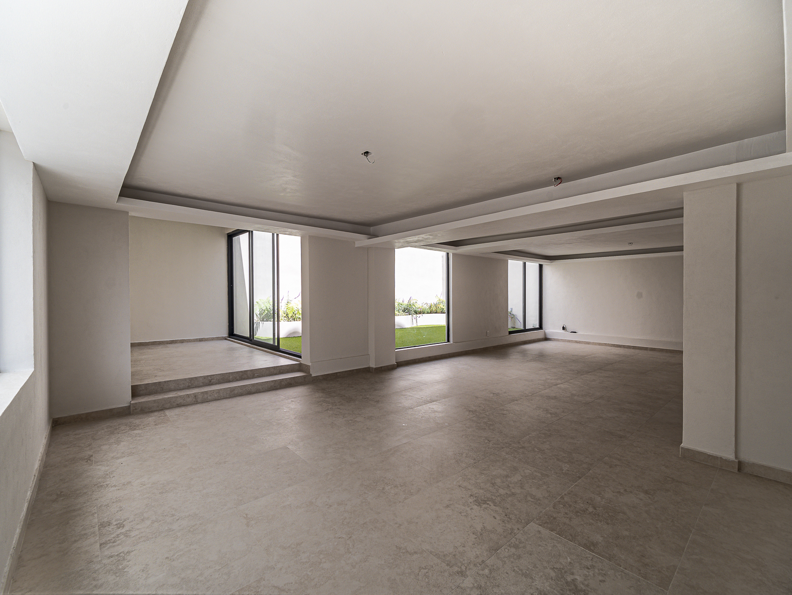 En el primero de ellos encontramos un pequeño espacio que bien puede ser un recibidor, y al otro costado, en el mismo piso, otro gran espacio con una bella chimenea de fondo ideal para una linda sala. Justo en el siguiente nivel encontramos todo el espacio del piso destinado a la estancia, con una preciosa vista a la primer terraza.