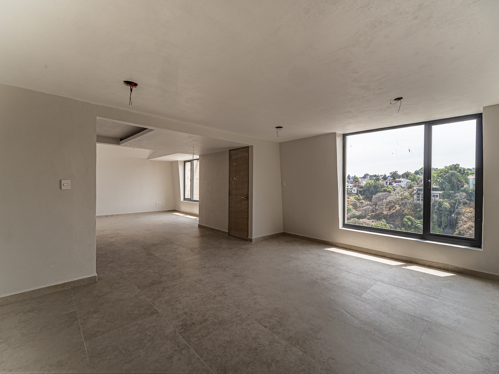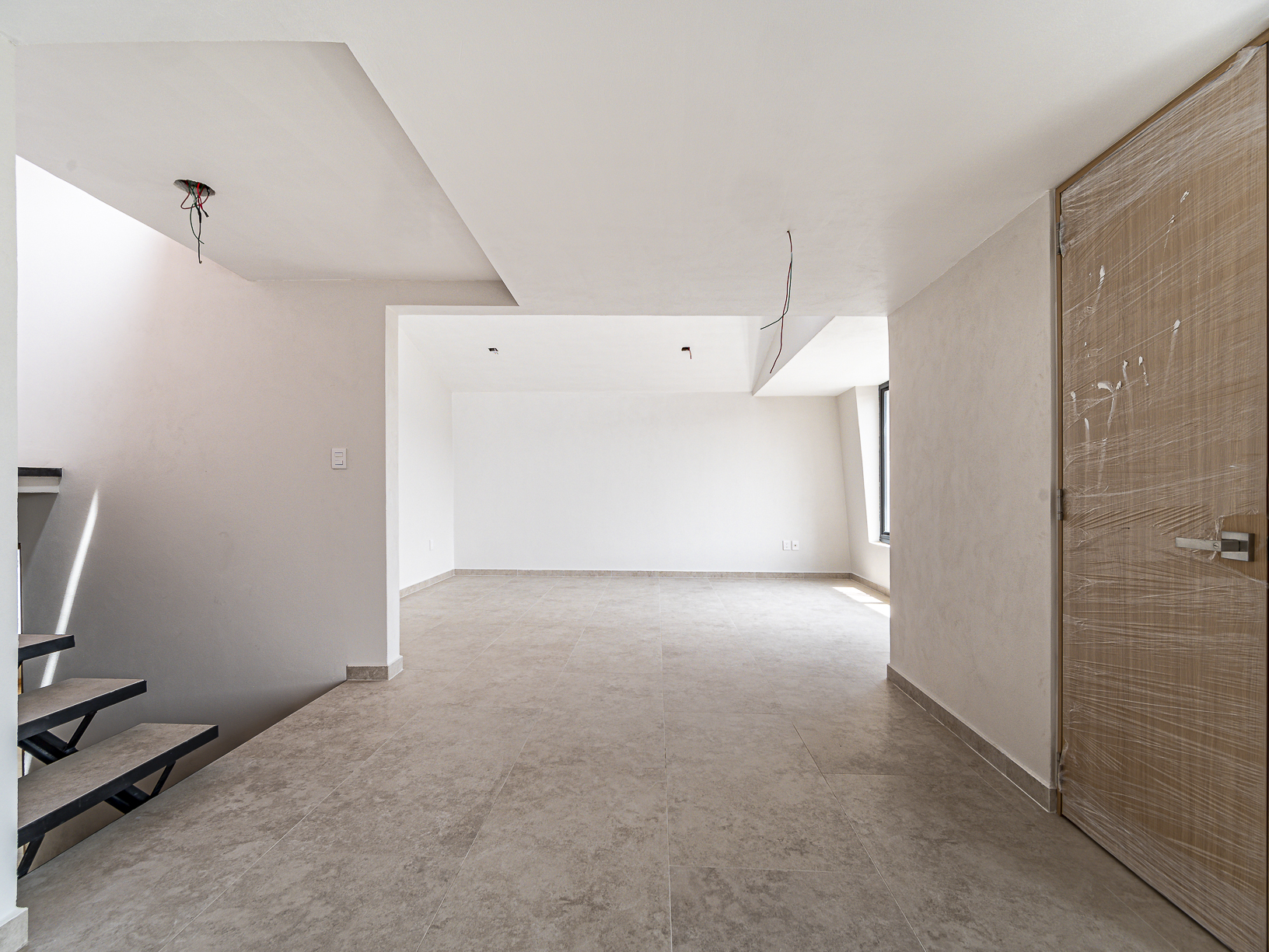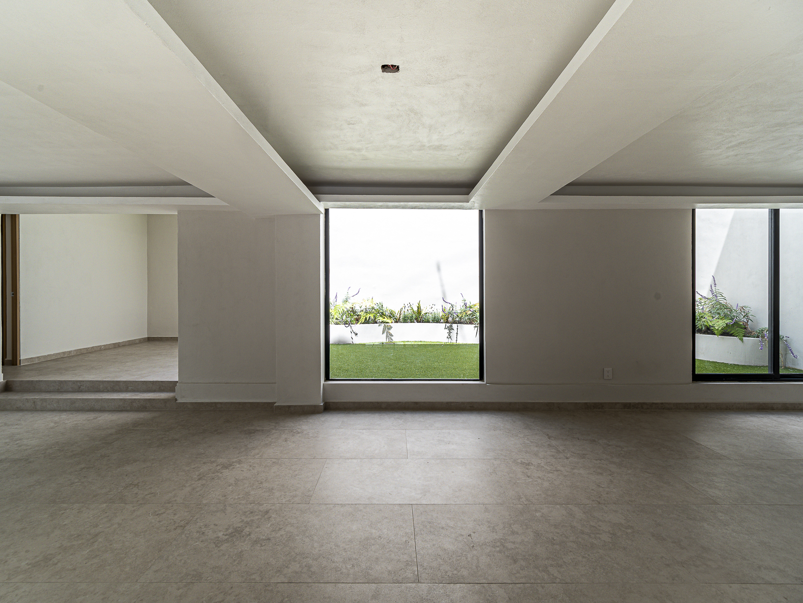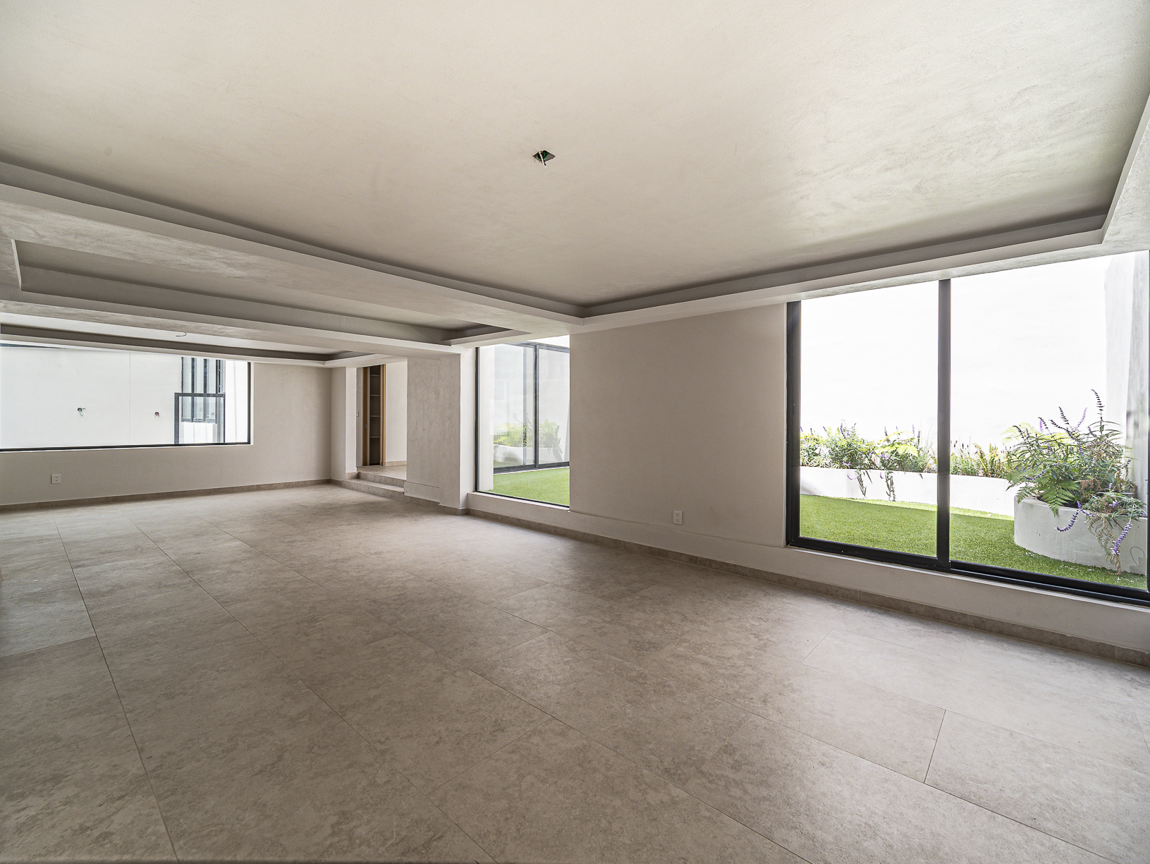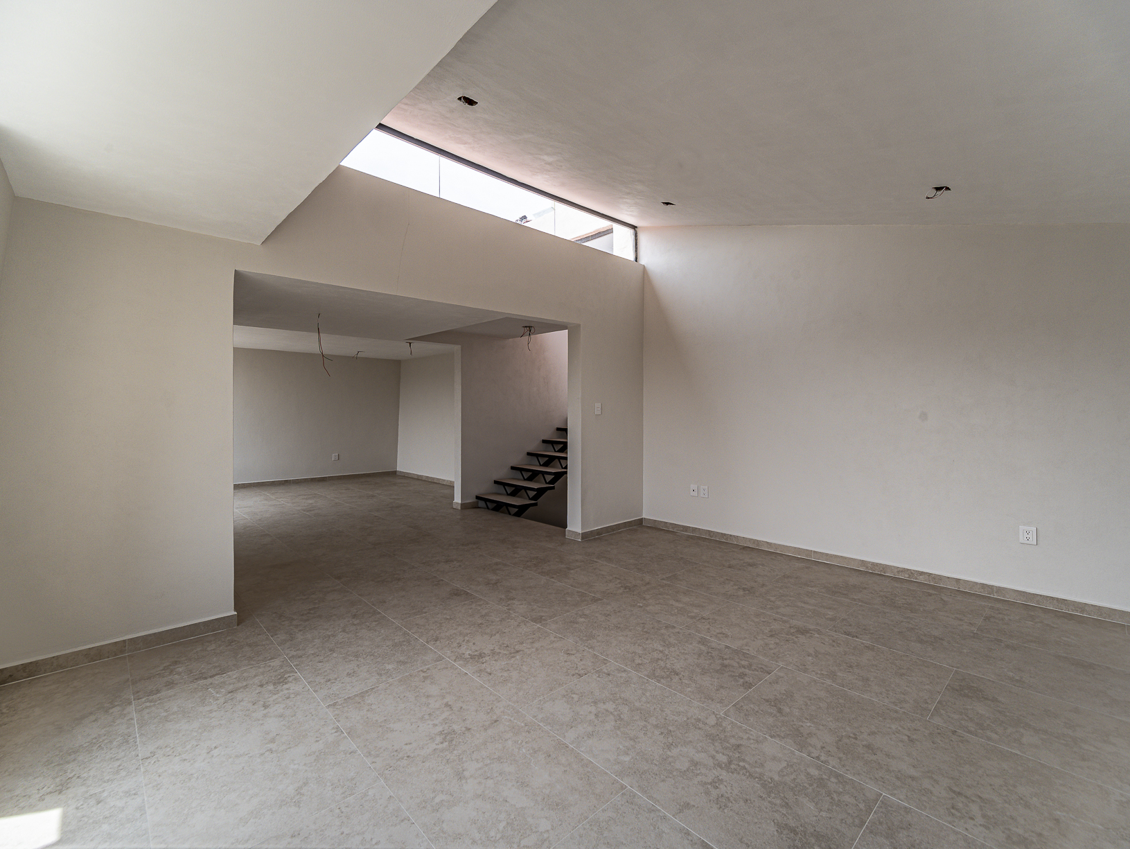 En el primero de ellos encontramos un pequeño espacio que bien puede ser un recibidor, y al otro costado, en el mismo piso, otro gran espacio con una bella chimenea de fondo ideal para una linda sala. Justo en el siguiente nivel encontramos todo el espacio del piso destinado a la estancia, con una preciosa vista a la primer terraza.
