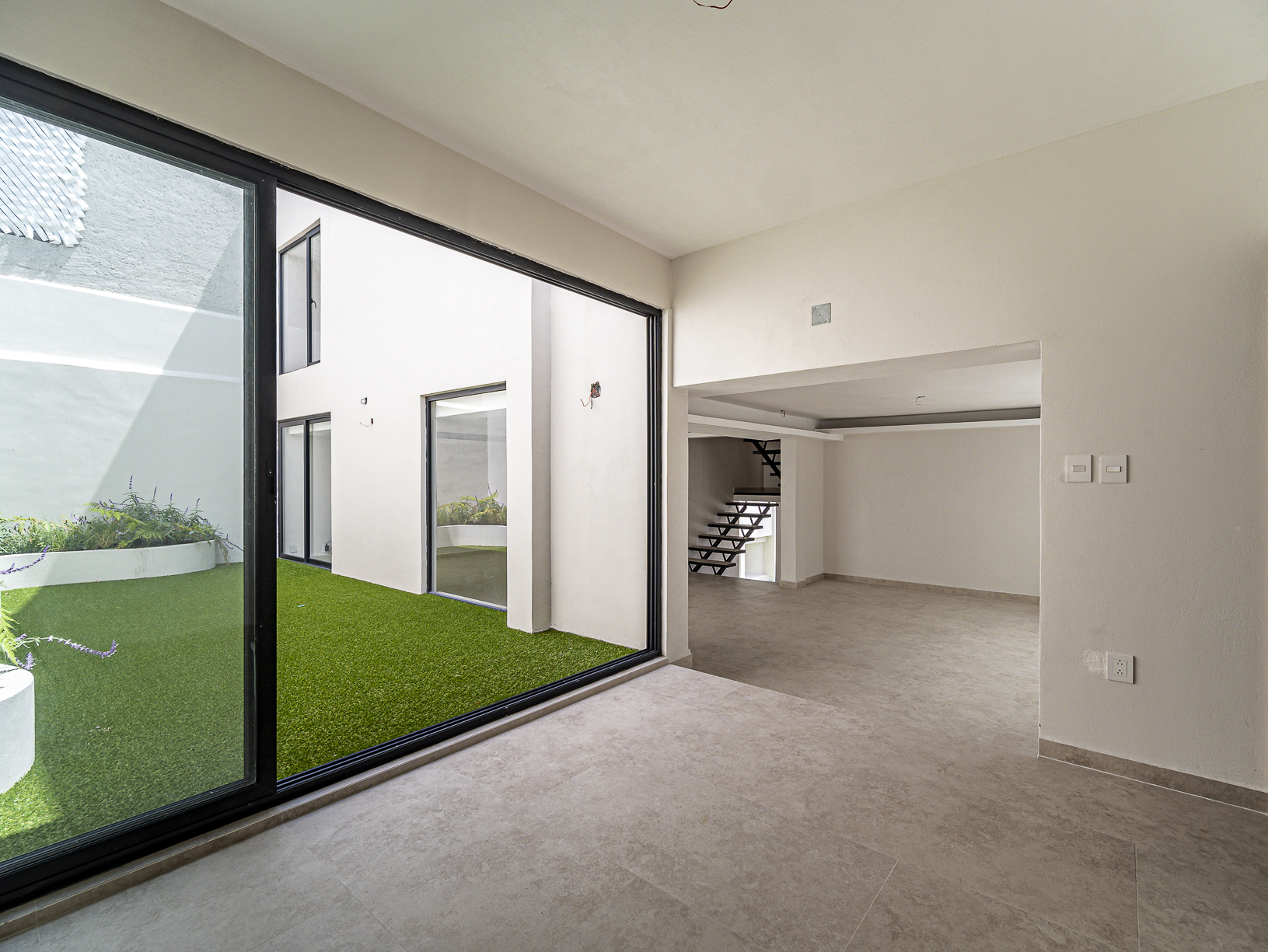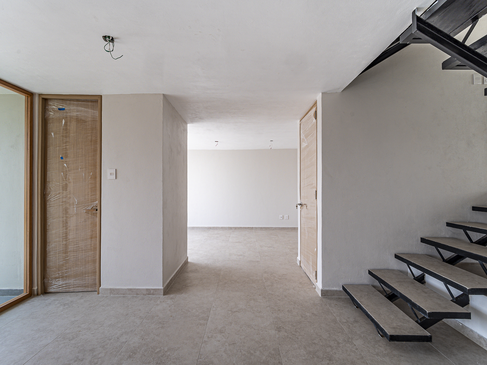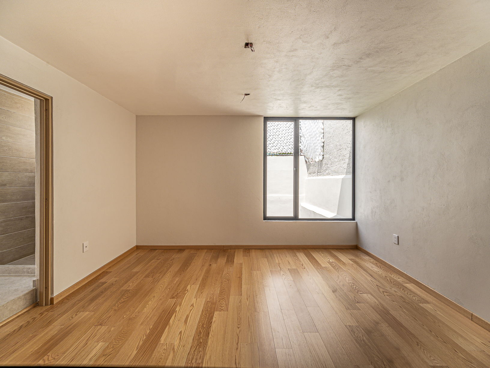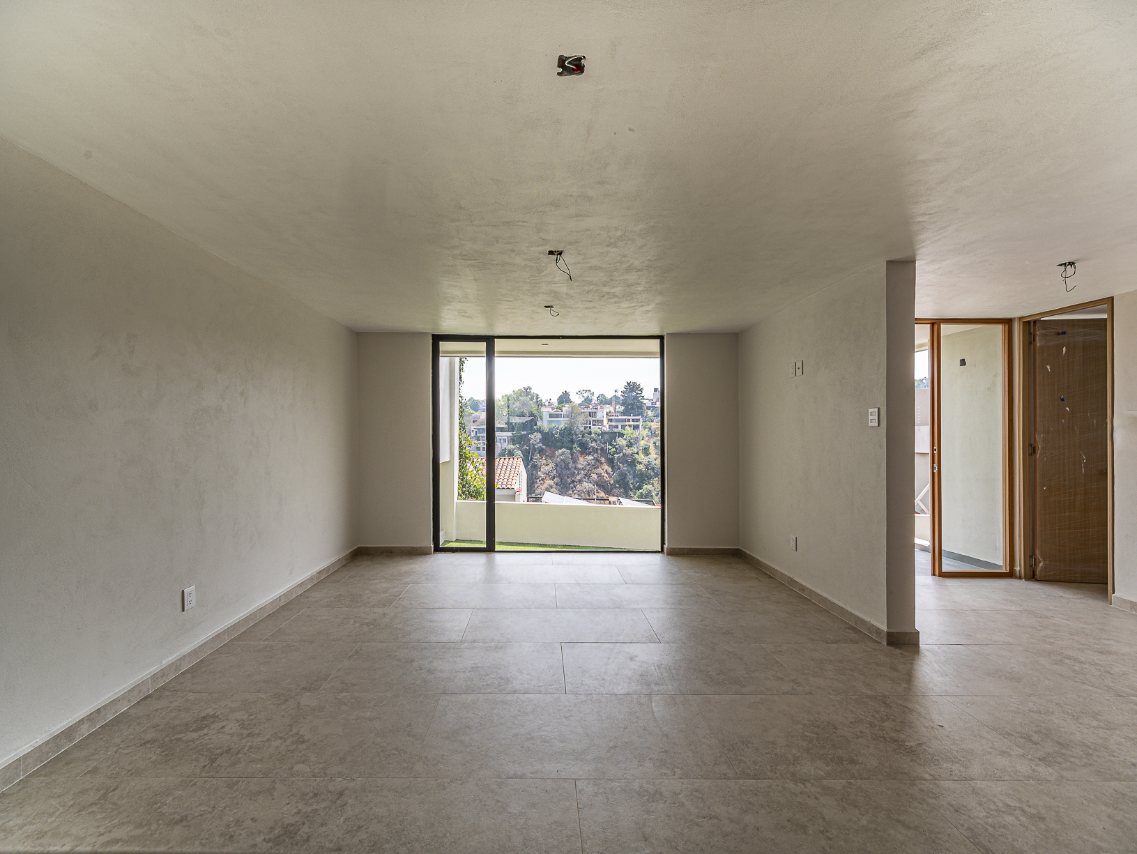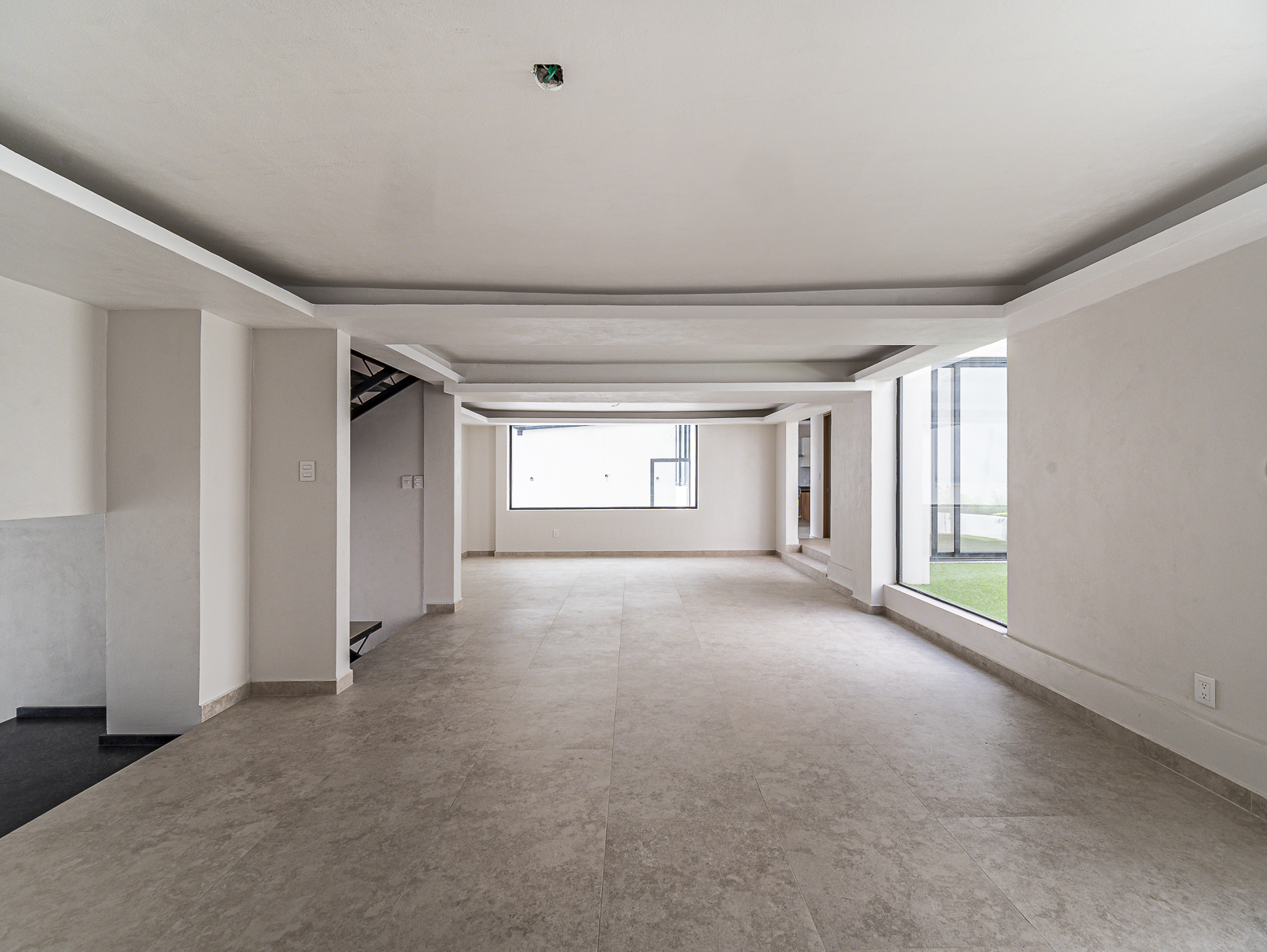 En el primero de ellos encontramos un pequeño espacio que bien puede ser un recibidor, y al otro costado, en el mismo piso, otro gran espacio con una bella chimenea de fondo ideal para una linda sala. Justo en el siguiente nivel encontramos todo el espacio del piso destinado a la estancia, con una preciosa vista a la primer terraza.