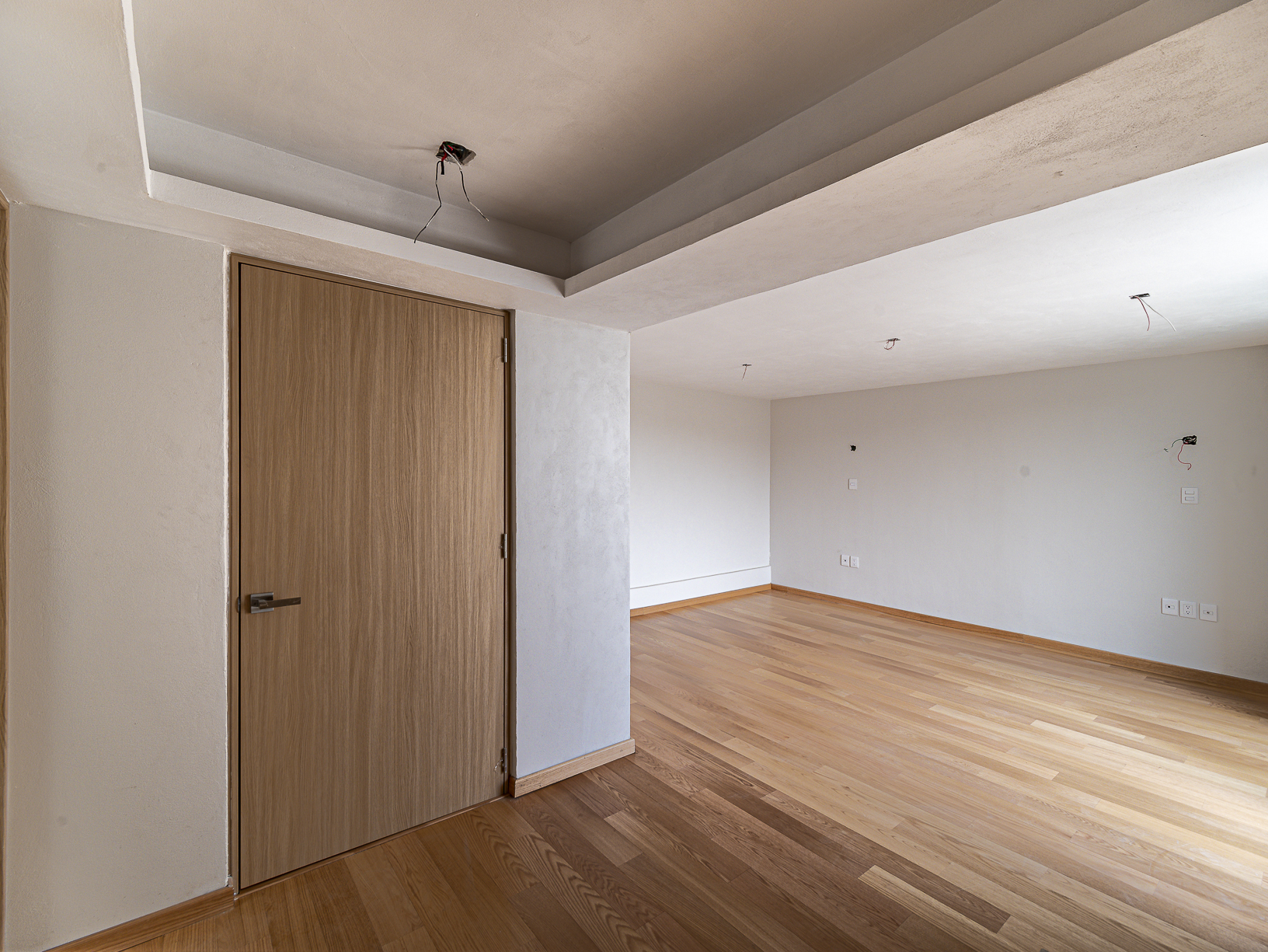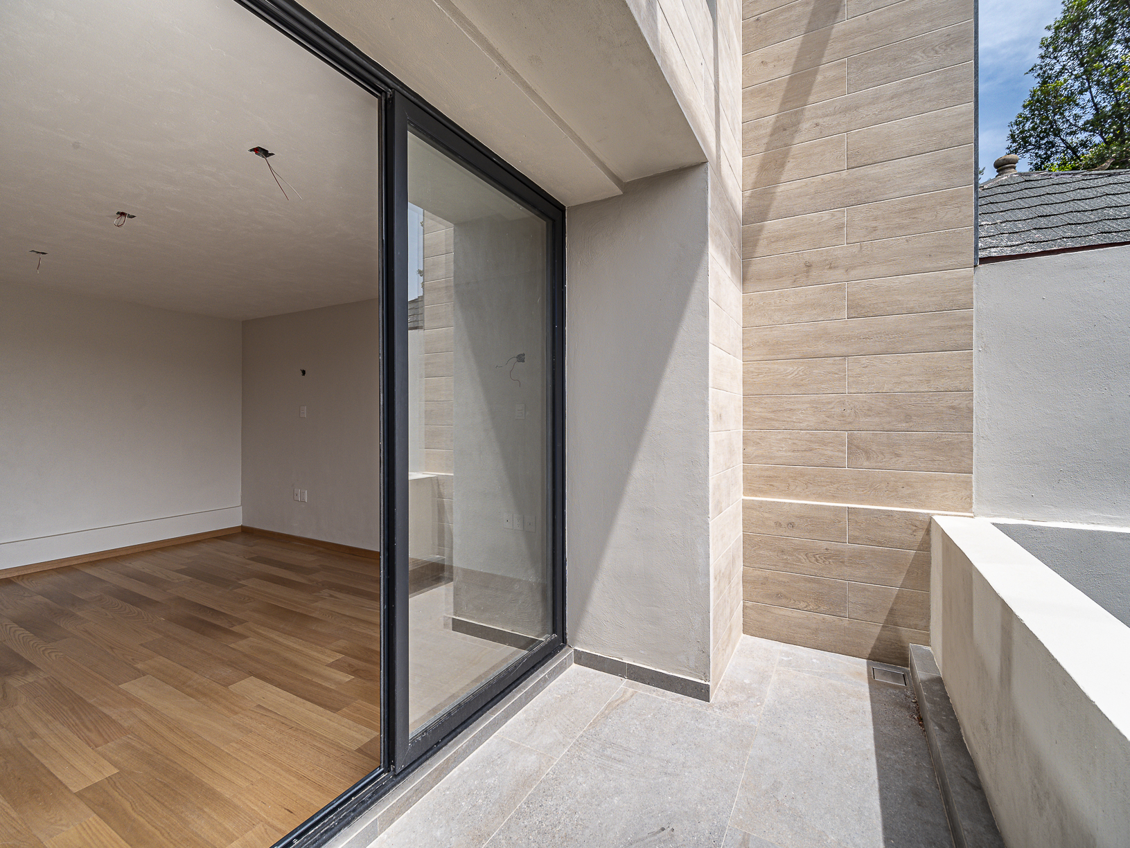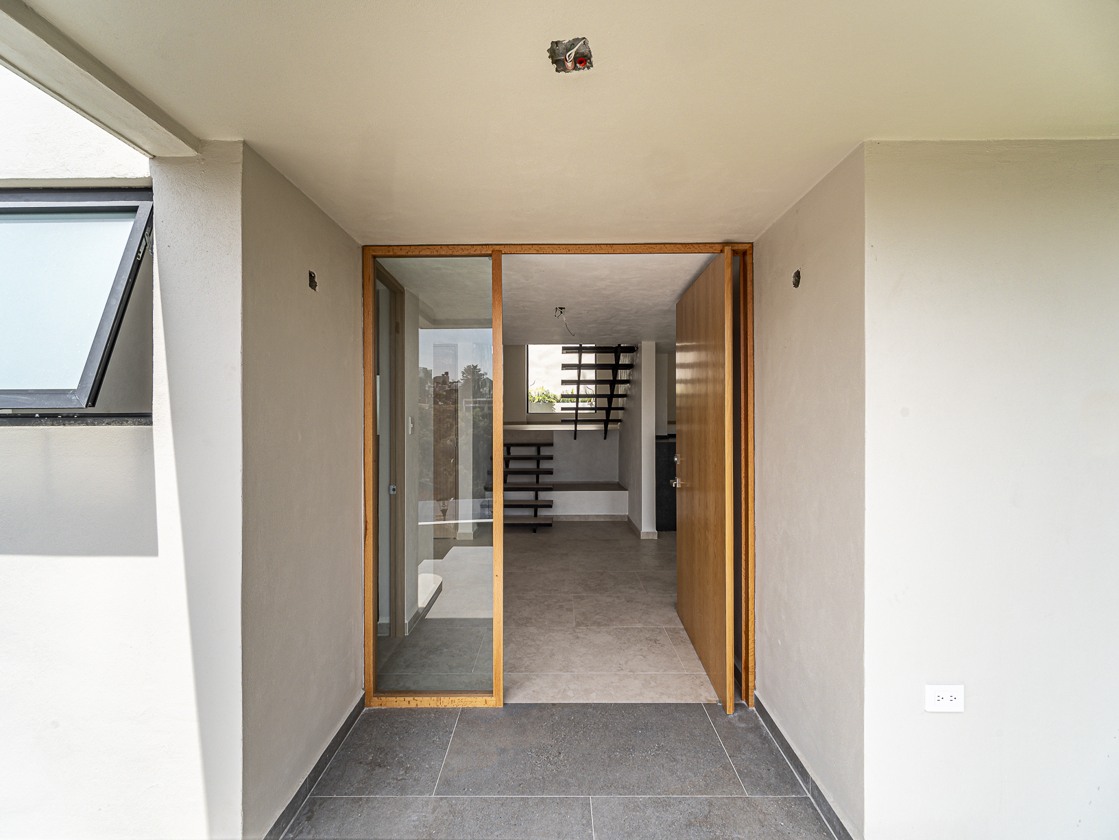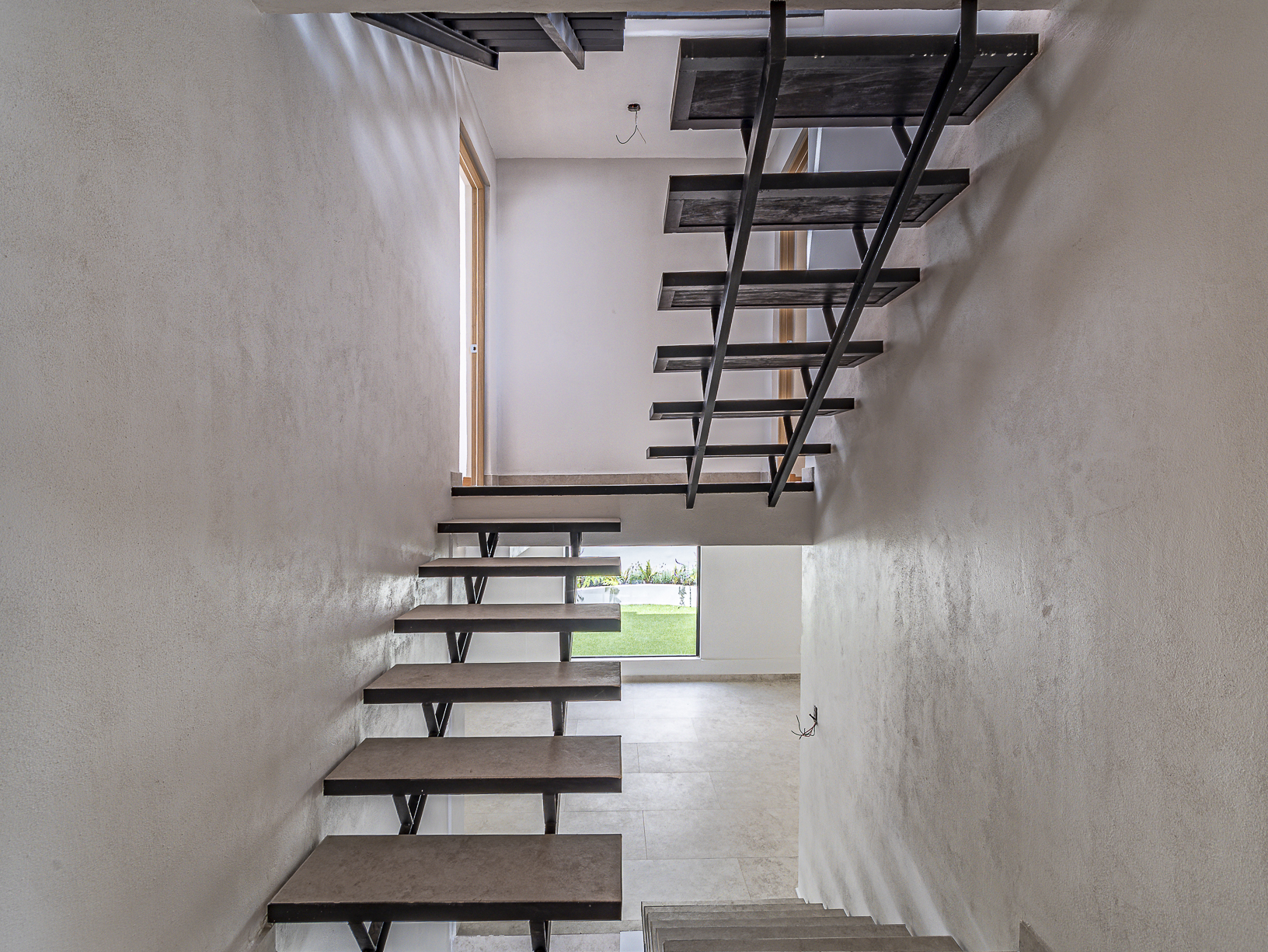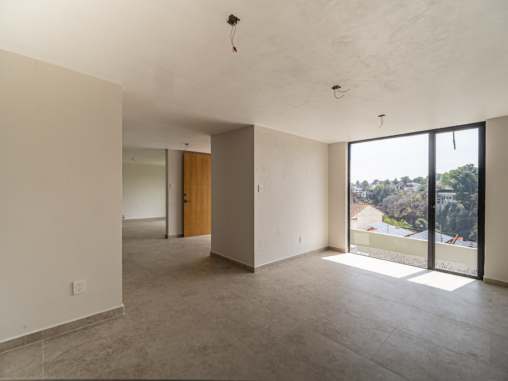En el primero de ellos encontramos un pequeño espacio que bien puede ser un recibidor, y al otro costado, en el mismo piso, otro gran espacio con una bella chimenea de fondo ideal para una linda sala. Justo en el siguiente nivel encontramos todo el espacio del piso destinado a la estancia, con una preciosa vista a la primer terraza.