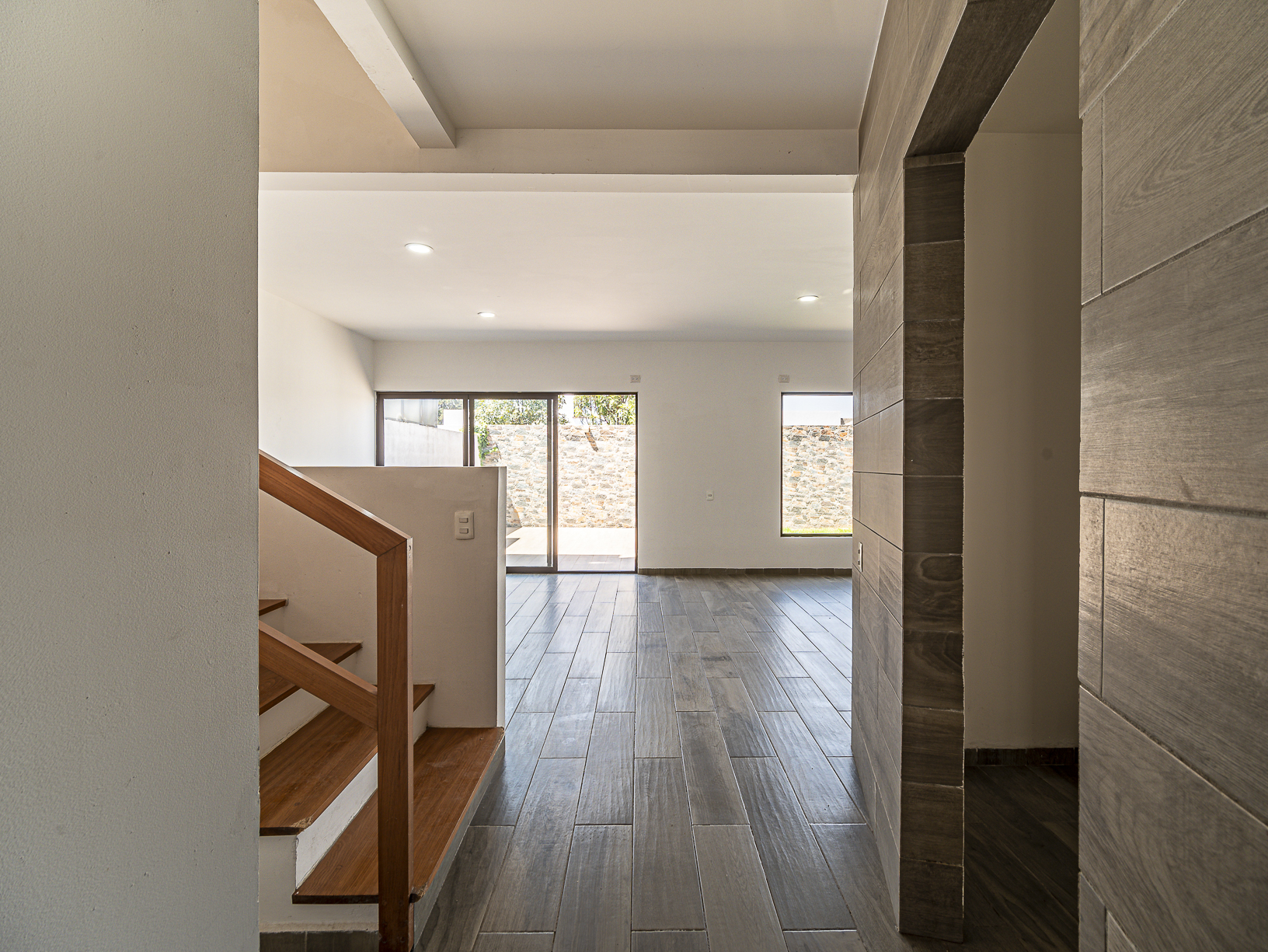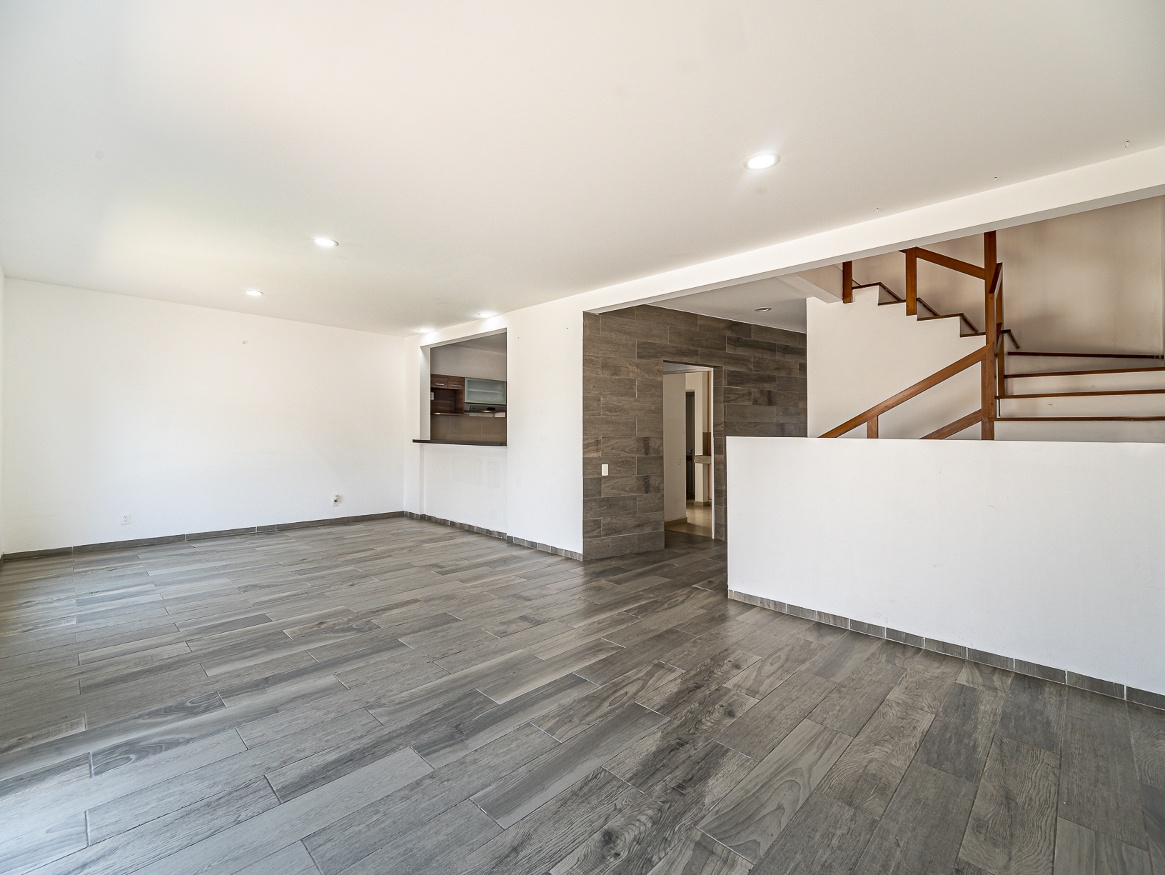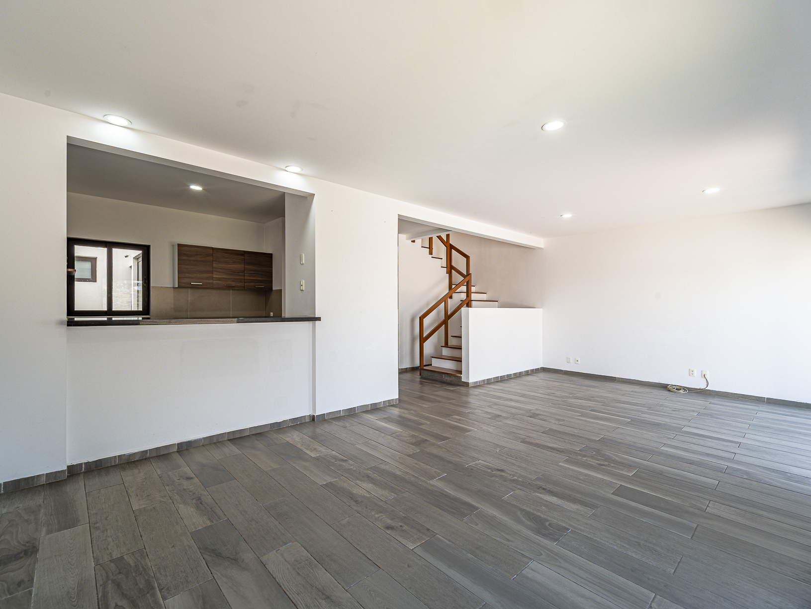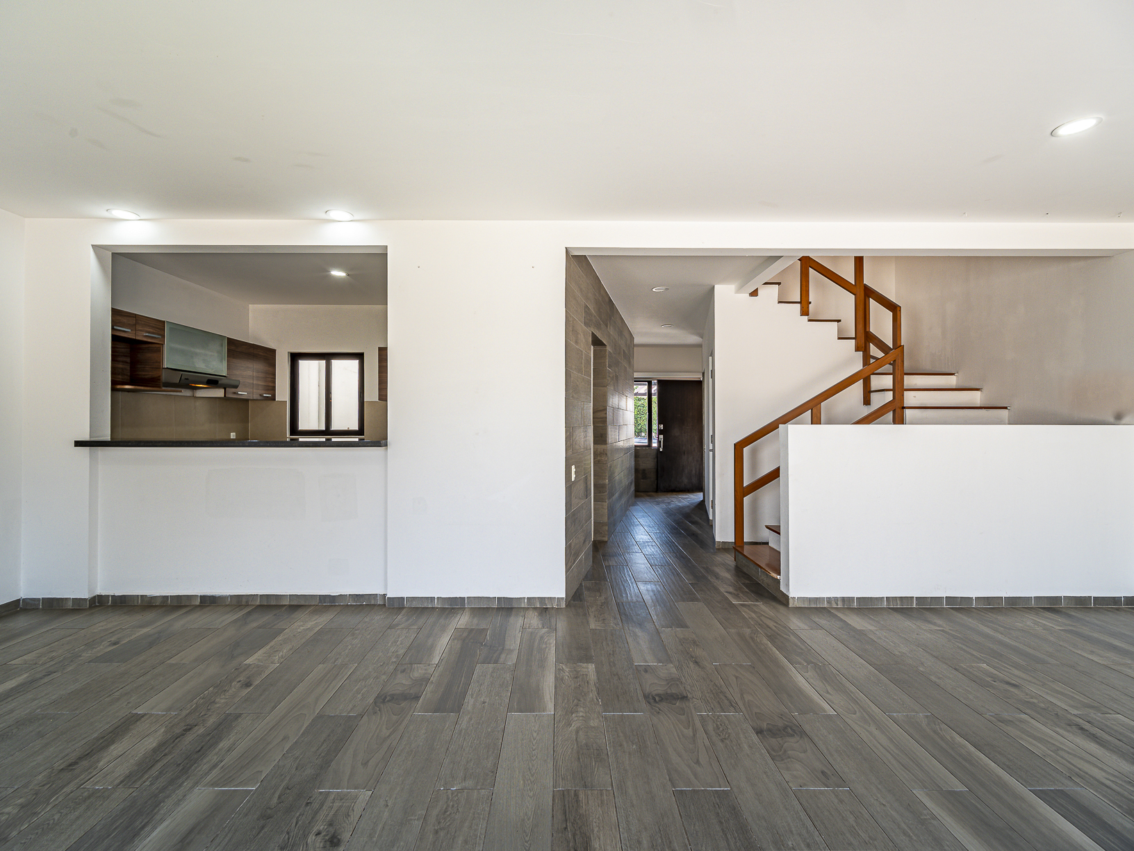 En el primer nivel, justo al entrar a la casa, tenemos un corredor en el cual se hay un medio baño para visitas, así como un pequeño closet para blancos, un poco más adelante encontramos la cocina integral (equipada) y junto a ella un cuarto de servicio con baño completo, así como un pequeño espacio destinado para el área de lavado. Al final del pasillo central y justo a un lado de la cocina, tenemos un amplio espacio para la estancia la cual conecta con un hermoso patio trasero que posee un pequeño espacio de jardín lo cual le brinda un toque especial y muy agradable.