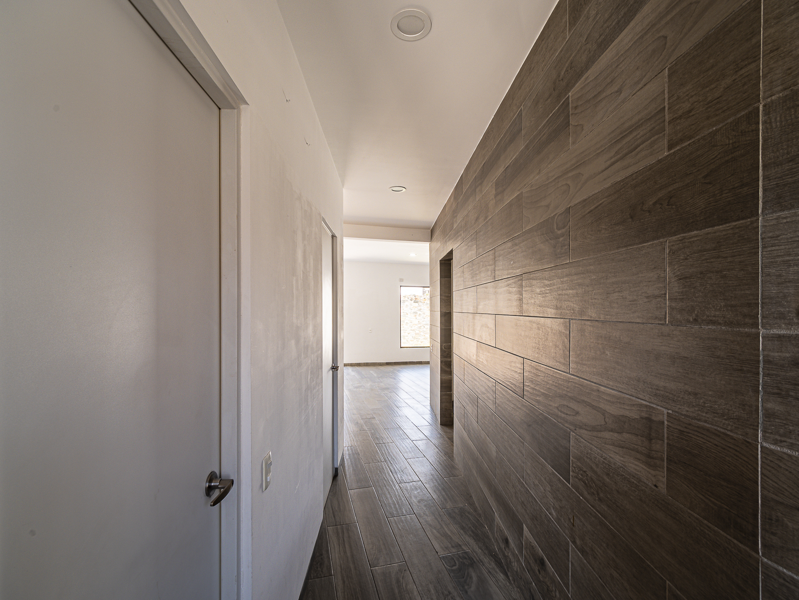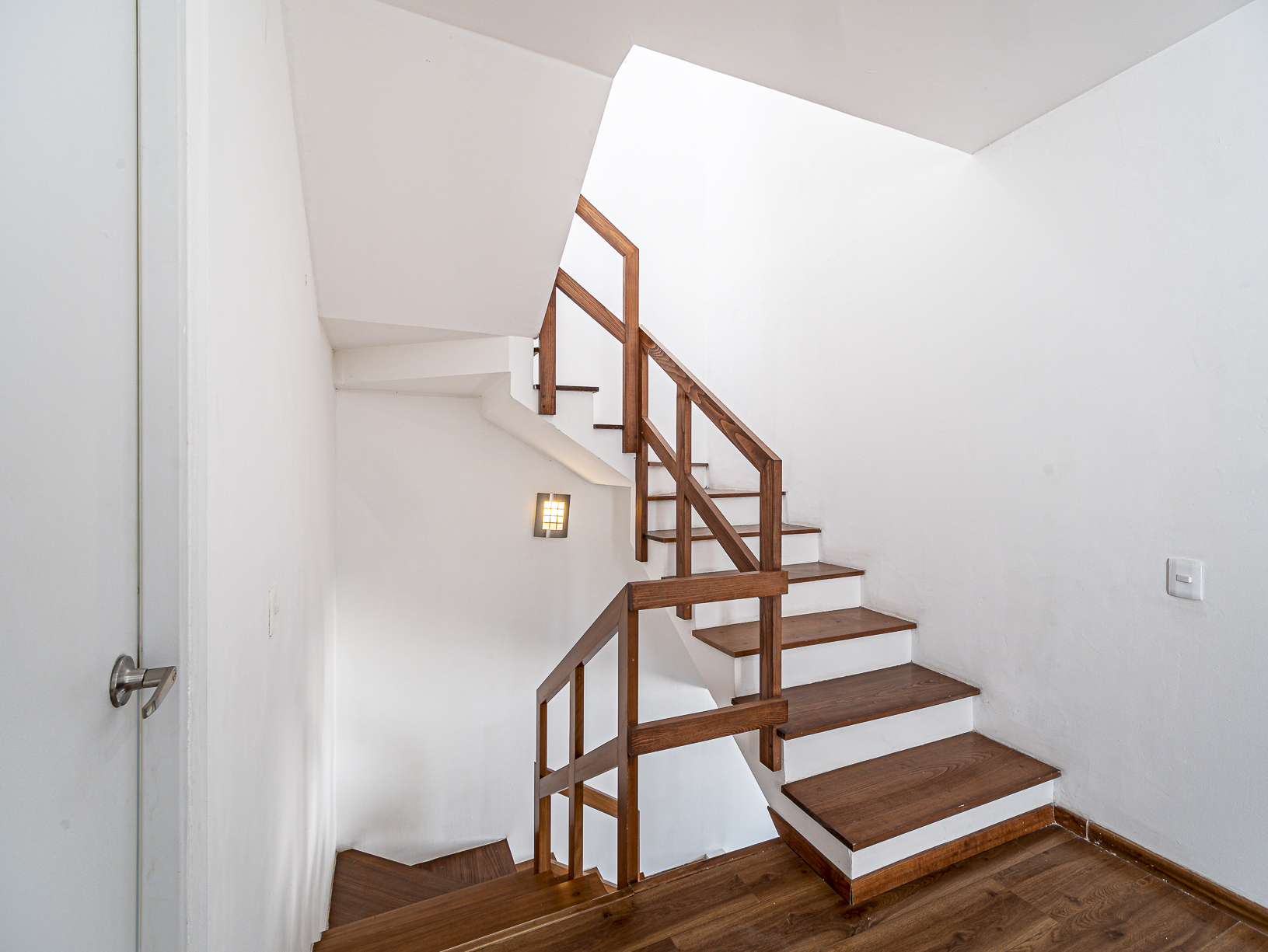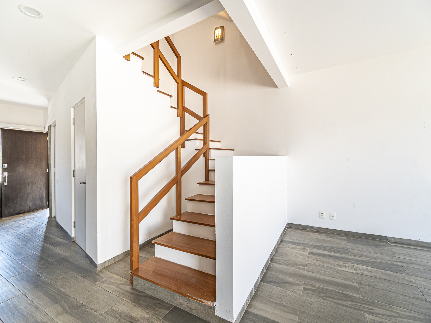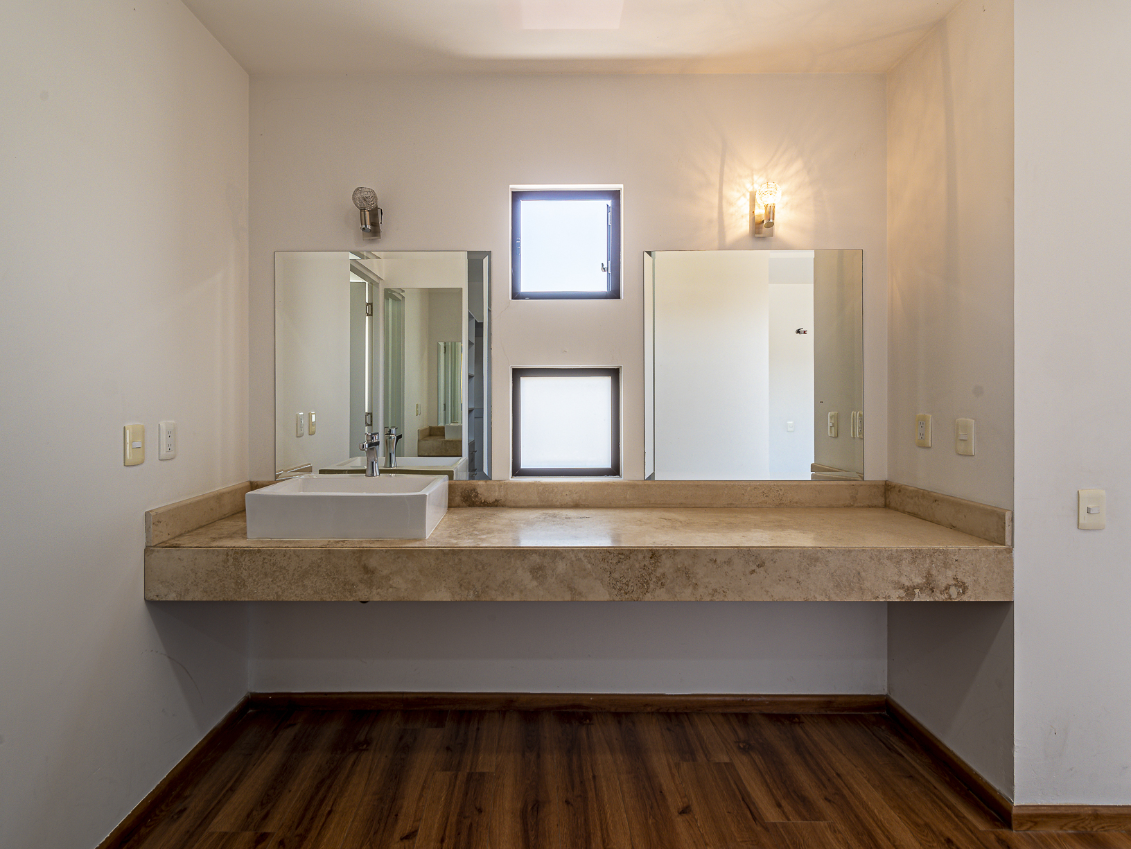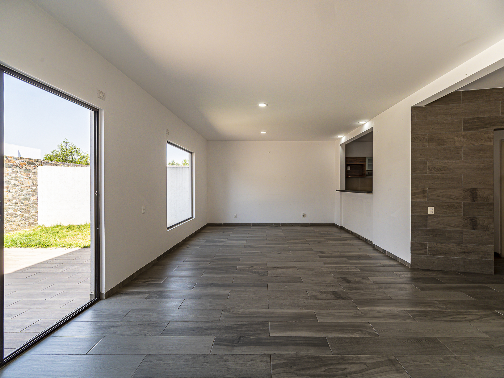 En el primer nivel, justo al entrar a la casa, tenemos un corredor en el cual se hay un medio baño para visitas, así como un pequeño closet para blancos, un poco más adelante encontramos la cocina integral (equipada) y junto a ella un cuarto de servicio con baño completo, así como un pequeño espacio destinado para el área de lavado. Al final del pasillo central y justo a un lado de la cocina, tenemos un amplio espacio para la estancia la cual conecta con un hermoso patio trasero que posee un pequeño espacio de jardín lo cual le brinda un toque especial y muy agradable.