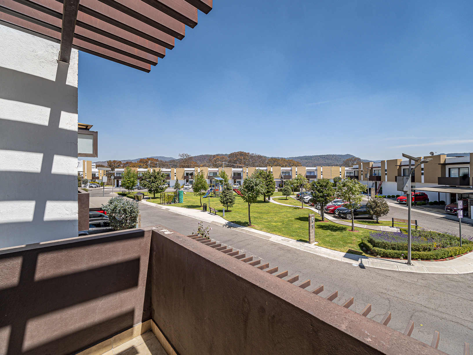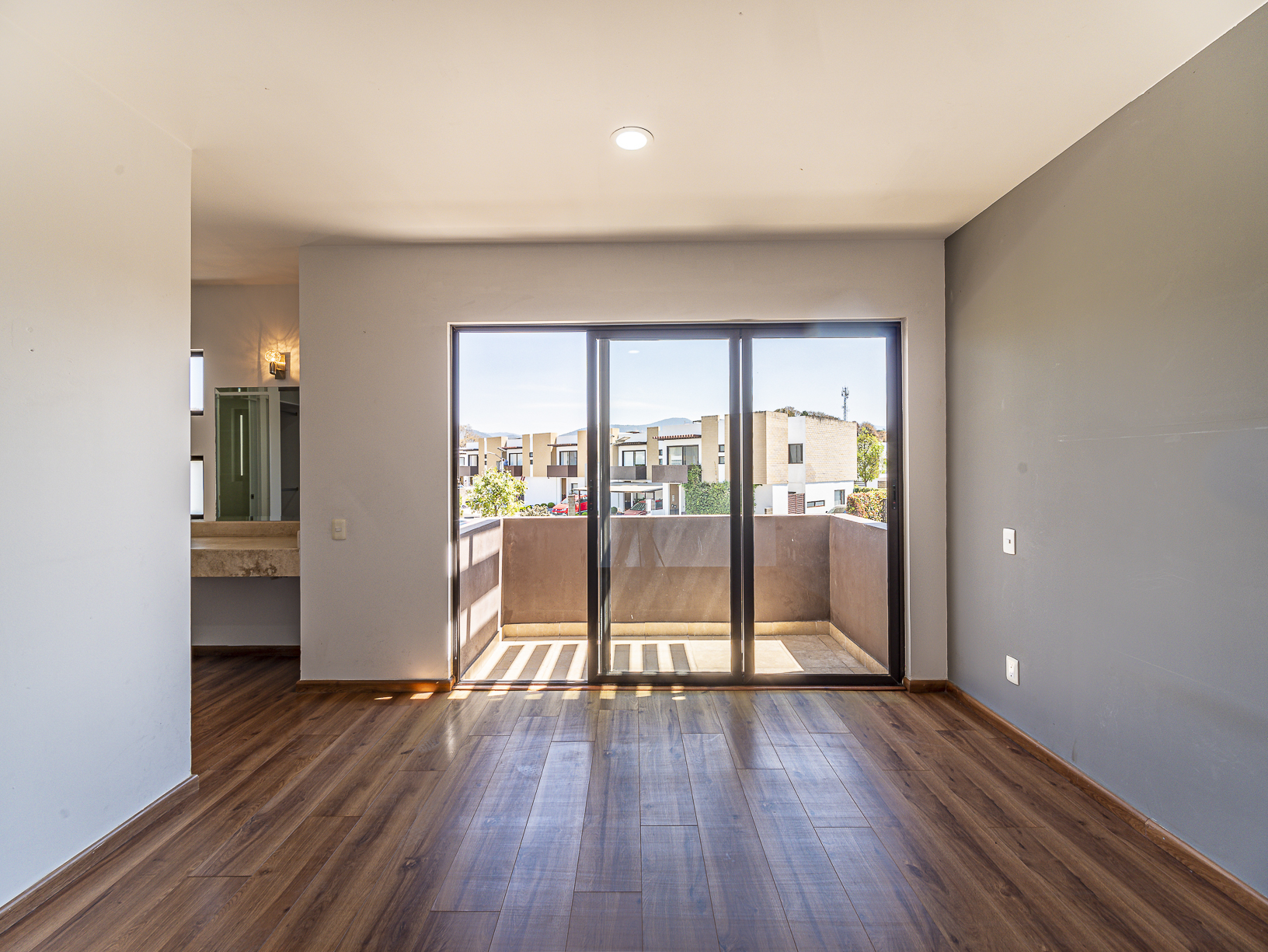En el segundo nivel encontramos las 3 recámaras, la principal de ellas cuenta con un balcón que tiene vista al área central del fraccionamiento, así como un hermoso y amplio vestidor y 1 baño completo. Las recámaras secundarias cuentan con closet y comparten un baño completo, adicionalmente, justo en el espacio que separa la alcoba principal de las secundarias se encuentra un considerable espacio para instalar una sala de TV.