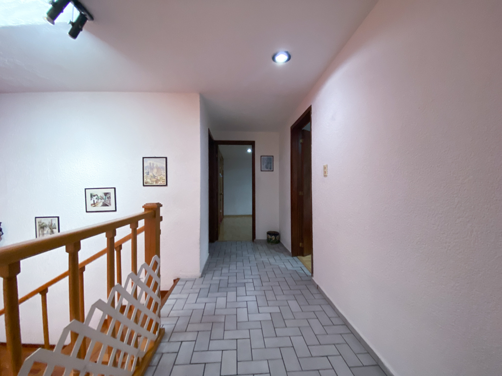En el segundo nivel encontramos las 3 recámaras, la principal de ellas cuenta con vistas a la calle, así como un hermoso y amplio baño con tina, la cual cuenta con un closet. Las recámaras secundarias cuentan con closet y comparten un baño completo con tina, ambas habitaciones están conectadas por un pasillo que las dirige a las escaleras.