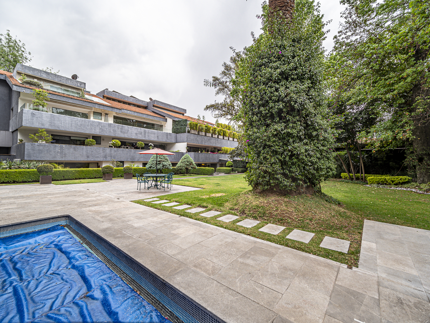 Éste grandioso fraccionamiento cuenta con vigilancia las 24 horas, dos extensos y bellos jardines y una alberca techada y climatizada. A sus alrededores cuenta con acceso a unas de las principales vías que recorre prácticamente toda la ciudad, el Periférico, sobra decir que está rodeada de escuelas, hospitales, centros comerciales, parques, restaurantes, a 10 minutos de la cosmopolita zona de Santa Fe.