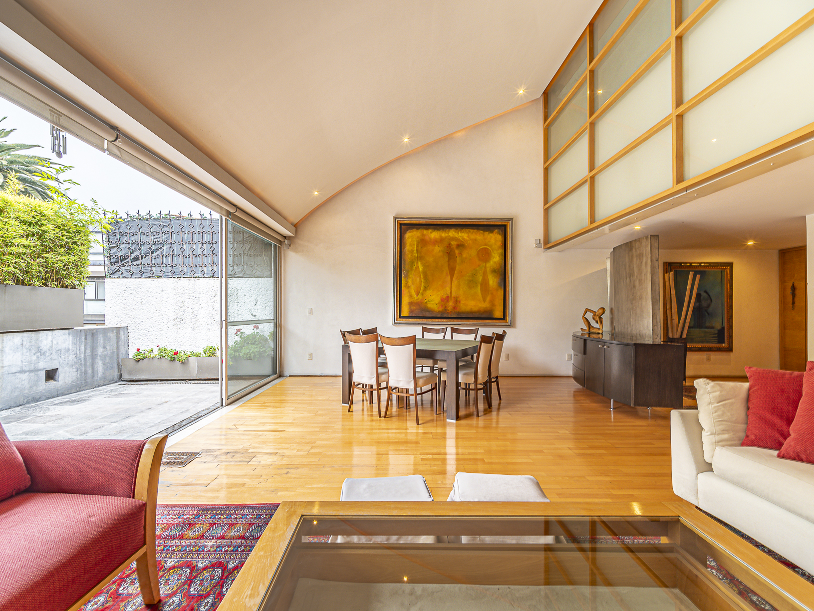 Espectacular Pent House en venta en una de las zonas más exclusivas, vanguardistas y seguras de la CDMX, éste increíble inmueble cuenta con 503m2 de construcción distribuidos en 2 extensas plantas.