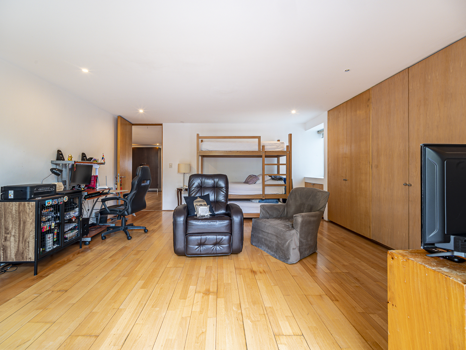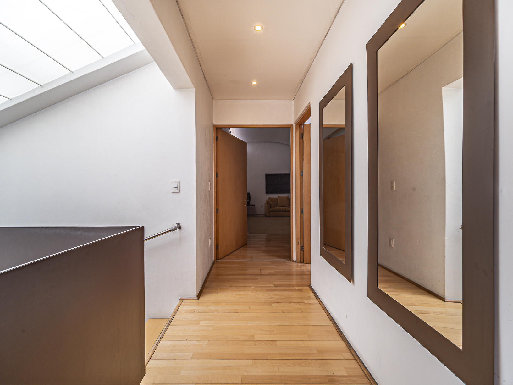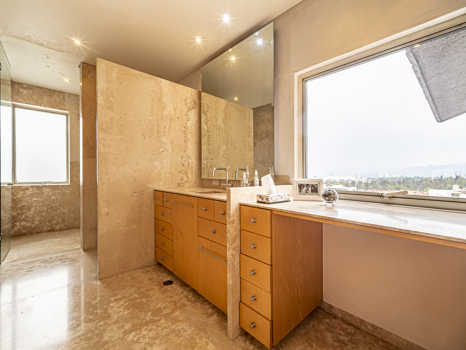Al pasar a la segunda planta tenemos 2 recámaras más, una de ellas la principal y cuenta con un gran vestidor y baño completo, la otra tiene un extenso vestidor y baño completo, el departamento posee 4 lugares de estacionamiento.