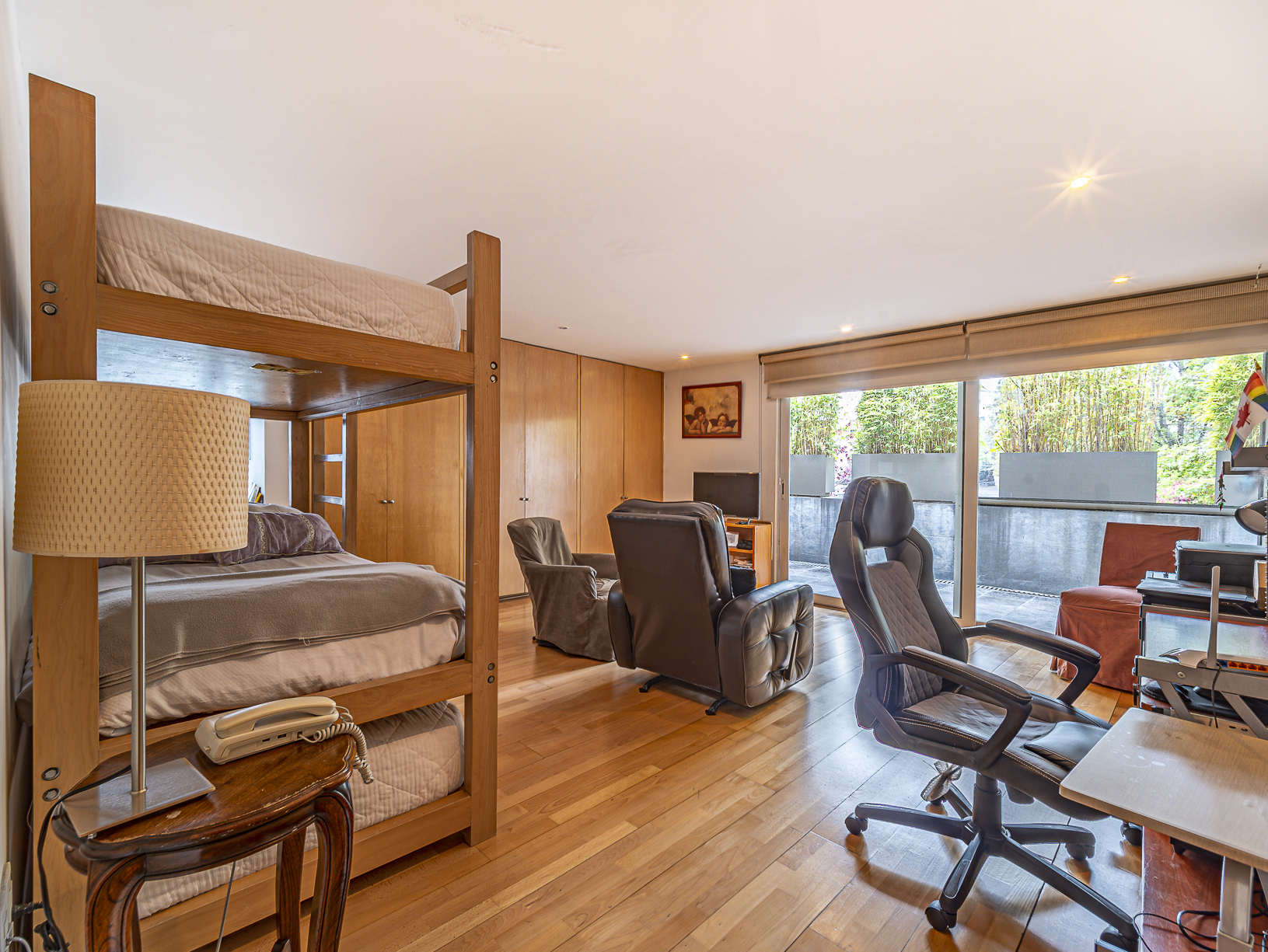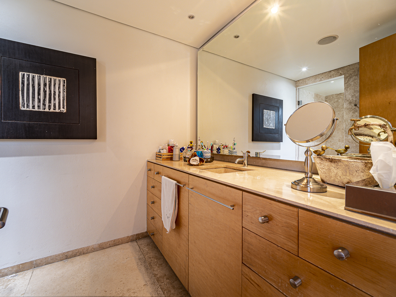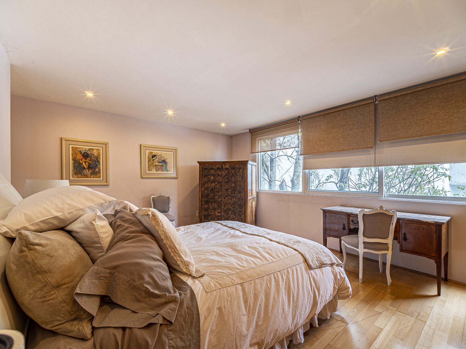 Al pasar a la segunda planta tenemos 2 recámaras más, una de ellas la principal y cuenta con un gran vestidor y baño completo, la otra tiene un extenso vestidor y baño completo, el departamento posee 4 lugares de estacionamiento.