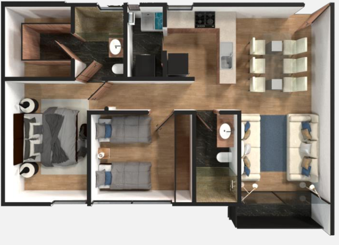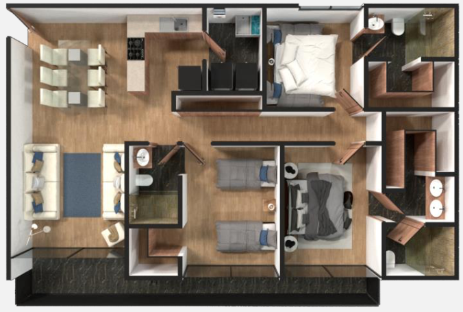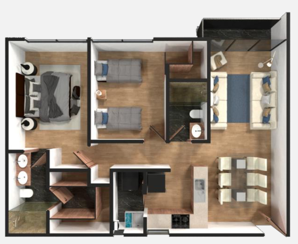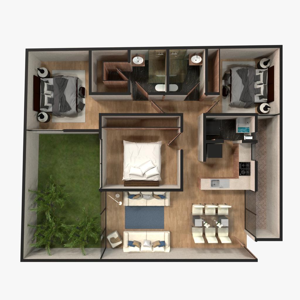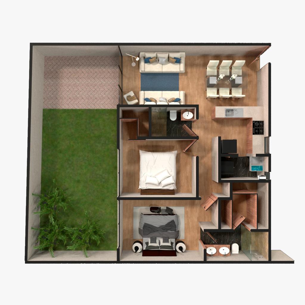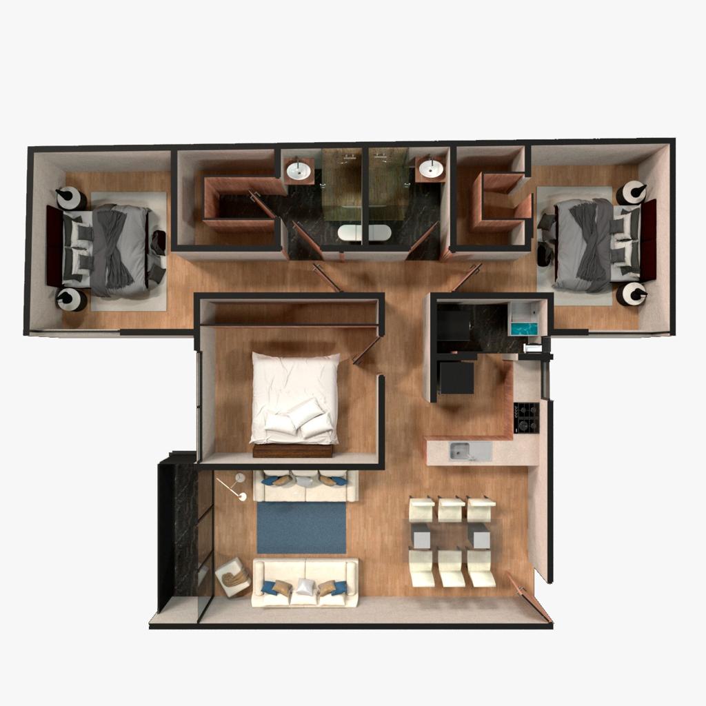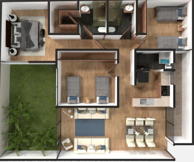 Dentro del desarrollo podrás encontrar departamentos de 84m2 a 250m2, 2 a 3 recamaras, 2 baños, 1 o 2 estacionamientos, balcón y ROOF COMÚN.